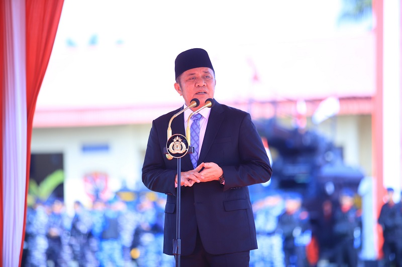 Gubernur Sumatera Selatan (Sumsel) H. Herman Deru menjadi Inspektur Upacara (Irup) pada peringatan Hari Bhayangkara ke-79 yang digelar di Markas Komando (Mako) Brimob Polda Sumsel, Selasa (1/7/2025). Dalam kesempatan tersebut, ia menyampaikan apresiasi tinggi atas dedikasi dan profesionalisme jajaran kepolisian dalam menjaga keamanan dan ketertiban masyarakat di Bumi Sriwijaya.