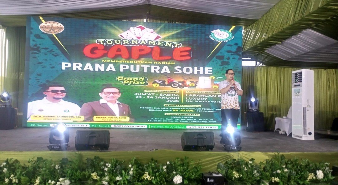 Anggota Dewan Perwakilan Rakyat Republik Indonesia, SN Prana Putra Sohe, secara resmi membuka Turnamen Gaple yang digelar pada Sabtu, 23 Januari 2026, bertempat di Lapangan Padel Luxury, Jalan Soekarno Hatta.