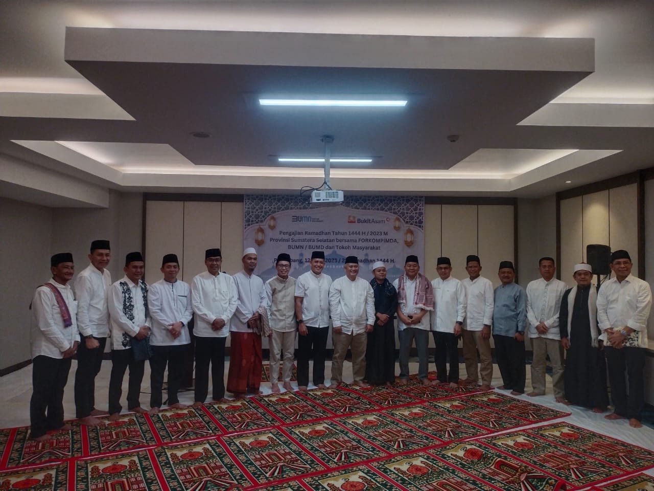 Turut hadir didalam pengajian Ramadhan 1444 Hijriyah/2023 Masehi yakni kepala biro Kesejahteraan Rakyat Provinsi Sumsel Abdul Hamid, Asisten Vice President Sumber Daya Manusia (SDM) Umum, Keuangan dan Coorporate Social Responsibility (CSR) PT Bukit Asam, TBK Yulian Sudarmawan, SVP Teknologi mewakili dari Direktur Utama PT Pupuk Sriwijaya Palembang Agus Mulyadi, penceramah Ustadz H Bukroni