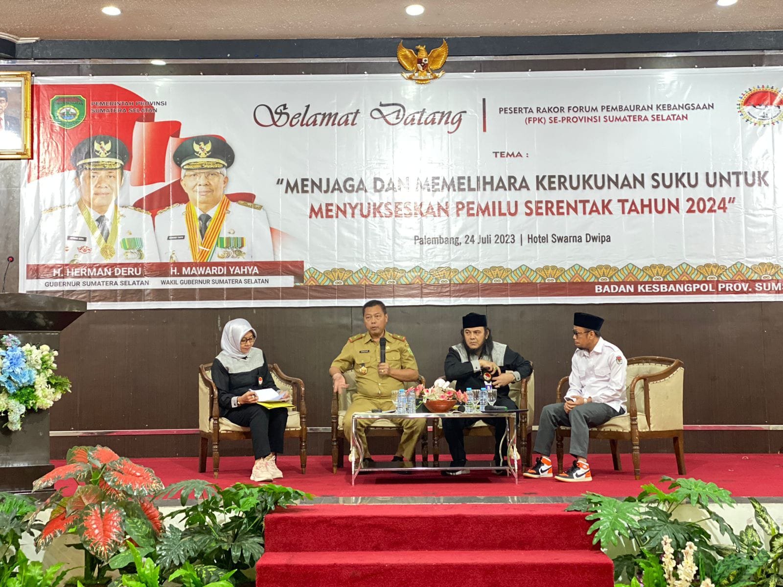 Selain itu juga ada Ketua FPK Sumsel Sultan Iskandar Mahmud Badaruddin, Anggota Komisioner Komisi Pemilihan Umum Provinsi Sumsel Hepriadi, metode rakor sendiri menggunakan metode penyampaian materi melalui paparan narasumber, diskusi panel, dan serta tanya jawab yang dipandu oleh moderator.