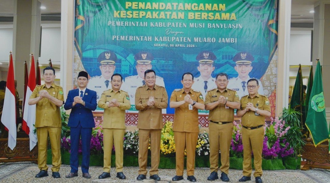 Pemerintah Kabupaten Musi Banyuasin (Muba) Provinsi Sumatera Selatan dan Pemerintah Kabupaten Muaro Jambi Provinsi Jambi menandatangani Naskah Kesepakatan Bersama tentang Kerjasama dalam Penyelenggaraan Urusan Pemerintah Daerah.