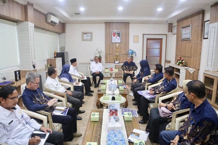 Sekretaris Daerah (Sekda) Provinsi Sumatera Selatan (Sumsel) Drs H Edward Candra, MH menerima audiensi Dr Hartono Dekan Fakultas Keguruan Universitas Sriwijaya terkait dengan akan digelarnya event Sriwijaya University Learning and International Conference (SULE-IC). Audiensi terima oleh Sekda bertempat di Ruang Tamu Sekda Sumsel Pemprov Sumsel, Rabu (4/9/2024).