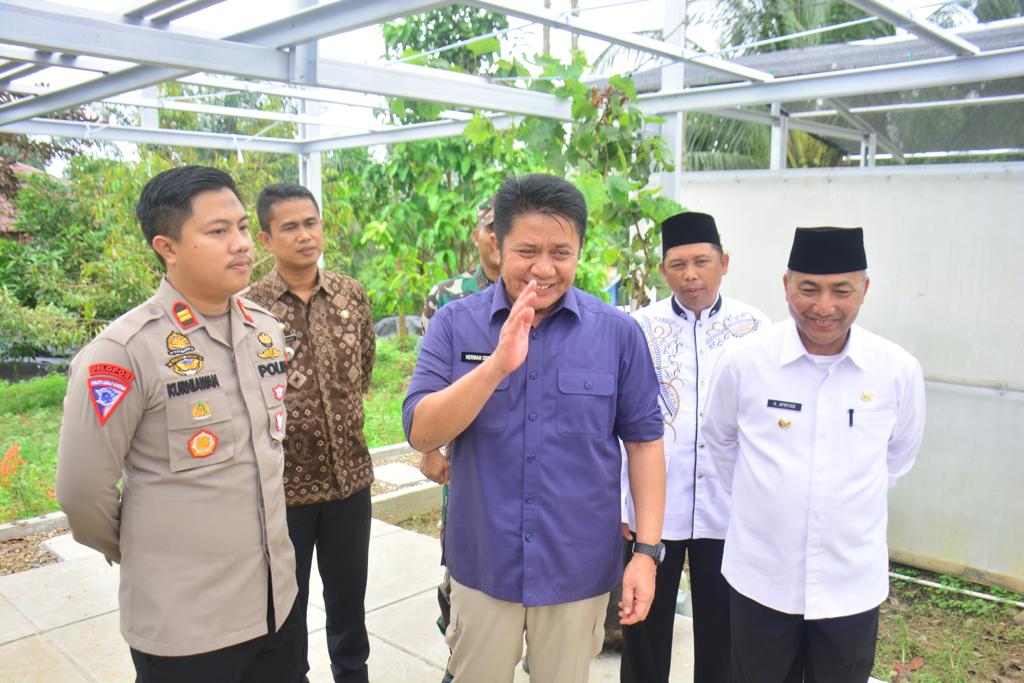 Disela-sela kunjungan kerja (kunker)- nya di Kabupaten Muba, Kamis (26/1), Gubernur Herman Deru melihat dari dekat tanaman buah, cabai, dan bumbu dapur yang ditanam di Lingkungan Mapolsek Keluang di bawah komando Kapolsek M Kurniawan Azwar.