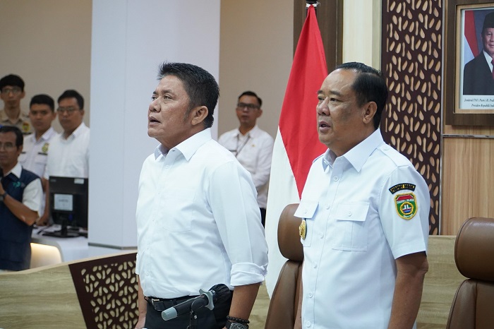 Gubernur Sumatera Selatan (Sumsel) H Herman Deru dan Wakil Gubernur (Wagub) H Cik Ujang menyaksikan secara daring dari Command Center Kantor Gubernur, Peluncuran Indikator Indeks Pencegahan Korupsi Daerah (IPKD) Monitoring Center for Prevention (MCP) Tahun 2025 oleh Ketua Komisi Pemberantasan Korupsi (KPK) Republik Indonesia (RI) Setyo Budiyanto, Rabu (5/3/2025).