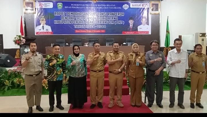 Pemerintah Provinsi (Pemprov) Sumatera Selatan (Sumsel) melalui Dinas Pekerjaan Umum Bina Marga dan Tata Ruang (PUBMTR) Provinsi Sumsel melaksanakan kegiatan rapat pembahasan substansi Rancangan Peraturan Daerah (Ranperda) Rencana Tata Ruang Wilayah (RTRW) Kabupaten Penukal Abab Lematang Ilir (PALI) Tahun 2024 -2044 yang langsung dibuka mewakili Penjabat Gubernur Sumsel Elen Setiadi, SH., MSE yang diwakili Kepala Dinas PUBMTR Provinsi Sumsel Ir H Muhammad Affandi, S.T., M.Sc., IPU., ASEAN.Eng yang diwakili oleh Sekretaris Dinas (Sekdis) PUBMTR Provinsi Sumsel Ir Ridwan, M.M secara resmi, dan kegiatan ini dipusatkan di Ballroom Hotel Swarna Dwipa Palembang, Senin (3/11/2024)