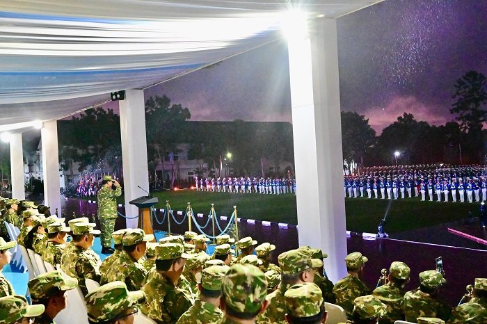 Dalam upacara parade senja ini, hadir Ketua DPR RI Puan Maharani, Ketua MPR RI Ahmad Muzani, Panglima TNI Jenderal Agus Subiyanto, Kapolri Jenderal Listyo Sigit Prabowo, Menteri Koordinator Bidang Infrastruktur dan Pembangunan Wilayah Agus Harimurti Yudhoyono, hingga Menteri ESDM Bahlil Lahadalia. (ril)