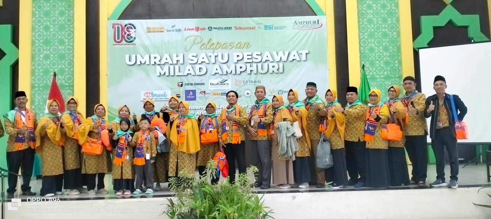 Suasana haru dan bahagia menyelimuti Asrama Haji Palembang, Kamis (25/9/2025), saat ratusan jemaah umrah dari berbagai daerah di Sumatera Bagian Selatan (Sumbagsel) dilepas secara resmi. Sebanyak 433 jemaah diberangkatkan dalam satu pesawat khusus, menjadikan momentum ini istimewa karena bertepatan dengan Milad ke-18 Asosiasi Muslim Penyelenggara Haji dan Umrah Republik Indonesia (Amphuri).