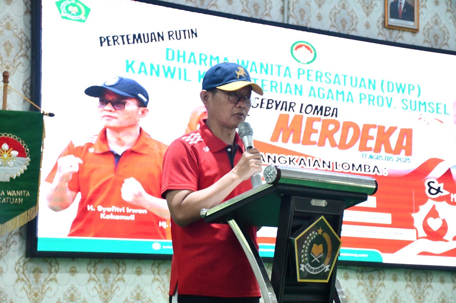 Menyongsong peringatan HUT ke-80 Kemerdekaan Republik Indonesia, jajaran Kementerian Agama Provinsi Sumatera Selatan bersama pengurus Dharma Wanita Persatuan (DWP) menggelar berbagai kegiatan lomba yang memadukan sportivitas, kekompakan, dan kepedulian sosial. Gebyar Lomba tersebut dibuka Kepala Kantor Wilayah Kementerian Agama Provinsi Sumatera Selatan H. Syafitri Irwan di aula gedung serbaguna MAN 3 Palembang, Rabu (13/08/2025).